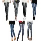 スキニー デニム レギンス レディース パンツ レギパン ジーンズ ストレッチ プリントデニム 9分丈