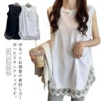 トップス レイヤード きれいめ ロング丈 総レース ノースリーブ レース ノースリーブ お尻が隠れる 大きいサイズ 重ね着 体型カバー レディース 裾