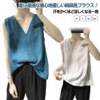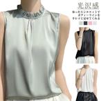 シャツ ノースリーブ ノースリ 袖なし ブラウス 光沢感 トップス サテン感 シンプル 無地 インナーウエア タンクトップ レディース 薄手 インナー