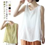 タンクトップ コットンリネン 綿麻 袖なし ブラウス 大きいサイズ 体型カバー トップス Tシャツ インナー 綿麻 Uネック ナチュラル ノースリーブ