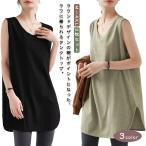 2枚セット!タンクトップ レディース トップス ノースリーブ Uネック ゆったり インナー タンクロング タンク レイヤード 体型カバー スリット ロ