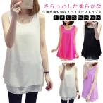 シフォン レディース シンプル タンクトップ シフォン きれいめ ブブラウス トップス インナー ノースリーブ Vネック レイヤード風 重ね着 インナ