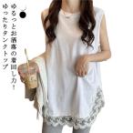Tシャツ 春夏 レイヤードタンクトップ きれいめ タンクトップ ロングタンクトップ トップス ノースリーブ ゆったり インナー 可愛い レース裾 薄手