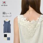【送料無料】フロント花柄レースタンクトップ レディース インナー トップス 綿100% コットン 丸首 花柄 レース ノースリーブ