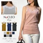 【メール便送料無料】ヒゲレースリブタンクトップ◆レディース タンクトップ レース レーヨン混 Vネック インナー リブ 美シルエット カジュアル ストレッチ