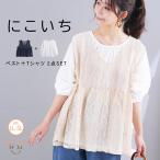 大きいサイズ レディース セットアップ ペプラム ベスト + 袖ゴム トップス にこいち ベスト トップス セットアップ アンサンブル LL 3L 4L 5L 夏