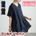 大きいサイズ レディース チュニック 半袖 5分袖 Vネック レイヤード フレア 凸凹 春コーデ 春 夏 秋 LL 2L 3L 4L 5L ブラック 黒 ネイビー ゴールドジャパン