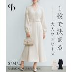ワンピース レディース シフォンワンピース マーメイドシルエット 裾フレア ドット柄 ドットシフォン ロング丈 クルーネック Vネック 裏地付き ウエ