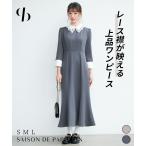 ワンピース ワンピ ロングワンピース 長袖 8分袖 ギャザースリーブ 襟付き レイヤード風 レース マーメイド バックゴム ウエスト切り替え バックフ