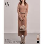 ジョニーカラー Vネックニット ニットワンピース スレンダーライン バックスリット マキシ オフィス 通勤 春 秋 冬 エレガント カジュアル 日常使