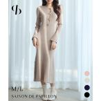 ニットワンピース ワンピース 長袖 レディース ニット ハイゲージ 涙開き マトンスリーブ ミモレ丈 Iライン きれいめ フェミニン ゆったり 共布ベ