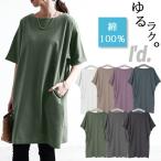 立体裁断 綿100% 二の腕ゆったり〜 ドルマン ポケット付 チュニック ワンピース 半袖 カノコ 丸首 無地 ゆる ワイド 春秋兼用 ドルマンスリーブ 5310