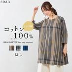 プリントチュニック 綿100% コットン ブラウス 半袖 ドット ストライプ インド綿 トップス レディース ゆったり 綿 ナチュラル カジュアル 体型カバー 五分袖