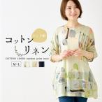 【限定品】綿100% コットン チュニック アート柄 半袖 トップス レディース 春 夏 秋 L LL クルーネック 丸襟 カジュアル さらさら 薄手 女性カジュアル