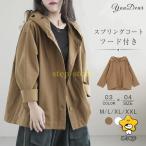 トレンチコート レディース スプリングコート フード付き ジャケット アウター チュニック 薄手 ロング丈 カジュアル ゆったり 春コート 春秋