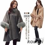 ポンチョ レディース 春秋冬 マントコート ストール ファーつき ドルマンスリーブ おしゃれ 体型カバー 着痩せ 冬アウター マントオーバー 防寒防風