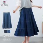 【送料無料】デニム調ティアードスカート◆レディース ティアード スカート デニム調 フレア カジュアル コットン 綿100% ボトムス 体型カバー◆