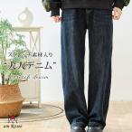 【送料無料】ロゴポケットストレッチデニム レディース デニム パンツ ロゴマーク 総ゴム ソフト パンツ ゆるシルエット カジュアル コットン 大人 綿