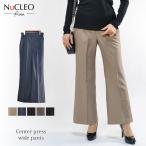 【メール便送料無料】センタープレスワイドパンツ◆レディース パンツ ツイル 美脚 ボトムス 大人 無地 30代 40代 50代 ストレッチ◆1064
