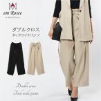 【送料無料】ダブルクロスタックワイドパンツ◆レディース ワイドパンツ タック 無地 黒 ダブルクロス ボトムス 上品 大人 30代 40代 50代◆