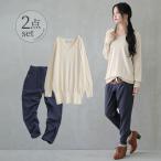 2024 レディース 2点セット 秋冬春 綿100% セーター 長袖 Vネック ロングパンツ レギパン スキニー※返品・交換不可※【メール便不可】【20】