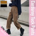 コーデュロイパンツ レディース ボトムス ウエストタック パンツ 冬物 ズボン ナチュラル ストレート ゆったり ロングパンツ あったか 長パンツ