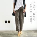 コクーンパンツ レディース Wガーゼ 春 夏 ワイド 体型カバー 50代 40代 30代 20代 白 黒 チェック 綿混 ナチュラル ロング ウエストゴム おしゃれ