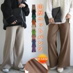 ワイドパンツ レディース ボトムス ニットパンツ 60代 50代 40代 30代 20代 あったか 暖か イージー ストレート きれいめ 秋 冬 ロング 黒 おしゃれ