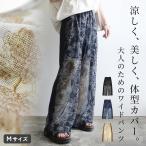 ワイドパンツ レディース レース ボトムス 体型カバー 60代 50代 40代 30代 20代 黒 春 夏 きれいめ ボトムス ウエストゴム ゆったり おしゃれ