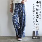 ワイドパンツ レディース 綿 インド綿 ボトムス コットン 春 夏 裏地 花柄 ボタニカル ゆったり 涼しい 涼感 ポケット ロング おしゃれ