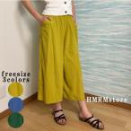 パンツ レディース ワイドパンツ ロングパンツ ガウチョパンツ 麻風 ゆったり 40代 50代 体型カバー 涼しい ウエストゴム