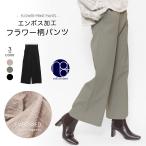 フラワー柄パンツ ボトムス レディース エンボス加工 ワイドパンツ ロングパンツ ウエストゴム (郵3) ポイント消化