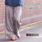 チェック柄ワイドパンツ ボトムス レディース ロングパンツ フロントテープ (ネコポス) ポイント消化