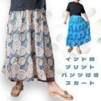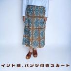 パンツスカート プリント マキシ スカート 付き パンツ 綿ローン インド綿
