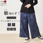 ワイドパンツルック 50代 デニムワイドパンツ レディース ゴム 美脚 ワイドパンツ ストレッチパンツ