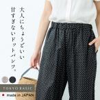 柄パンツ 水玉 イージーパンツ ワイドパンツ レディース 40代 50代 日本製 リネン&コットン ドット柄 ワイドパンツ