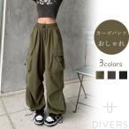 ワイドパンツ カーゴパンツ レディース ロング丈 ボトムス 体型カバー ロングパンツ ゆったり ハイウエスト ビッグシルエット ストリート 40代50代 無地