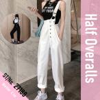 クロップト デニム オーバーオール サロペットパンツ レディース 韓国ファッション アンクル パンツ