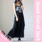ジャンスカ サロペット スカート デニムスカート ロング フレア レディース 韓国ファッション シンプル ベーシック 体型カバー 大きいサイズ