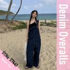 デニムオーバーオール オーバーサイズ レディース ビッグ サロペット ワイド ロングパンツ 大きいサイズ