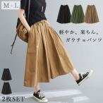 ガウチョパンツ 3色選べる 2枚セット ワイドパンツ キュロット パンツ 春 夏 ブラック カーキ ブラウン 綿100% コットン スカーチョ