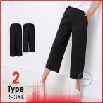 ワイドパンツ レディース クロップド丈 7分丈 9分丈 春 夏 秋 ガウチョパンツ ハイウエスト ウエストゴム 大きいサイズ