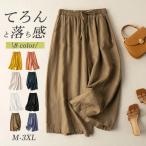 ワイドパンツ ガウチョパンツ スカーチョ スカンツ レディース ガウチョ ボトムス 七分丈 綿麻 ポケット付き ウエストゴム 春 夏 体型カバー 無地