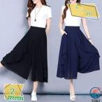 ハイウエスト ワイドパンツ レディース スカーチョ ゆったり ガウチョ パンツ 夏 大きいサイズ ふんわり 涼しい ウエストゴム シフォン裏地あり 2枚重ね ガウチ