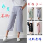 ガウチョ レディース ウエストゴム ボトムス ガウチョパンツ ワイドパンツ 薄手 スカーチョ ルームウェアー 無地 レディース 7分丈 パンツ