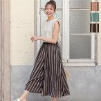 ワイドパンツ ガウチョ スカーチョ ウエストゴム ストライプ ゆったり 体型カバー 夏 レディース ボトムス M3344