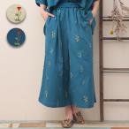 PORINA フルール刺繍綿麻パンツ【WEB限定】 / ワイドパンツ ボトムス レディース 春 夏 花柄 刺しゅう 大人 クロップド丈 ウエストゴム インド 綿 リネン ns