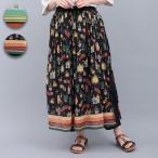 メヒコモチーフプリントパンツスカート / ロングパンツ レディース 春 夏 薄手 スカート見え レイヤード風 サイドボタン ウエストゴム 楽ちん ボトムス