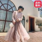 ニット ロングスカート セット セーター シフォン スカート リボン ガーリー 長袖 ピンク ブルー 大人可愛い エレガント 上品 送料無料