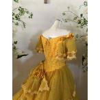 貸衣装処分品 カクテルドレス 黄色 オレンジ 襟 裾フワフワ 7号